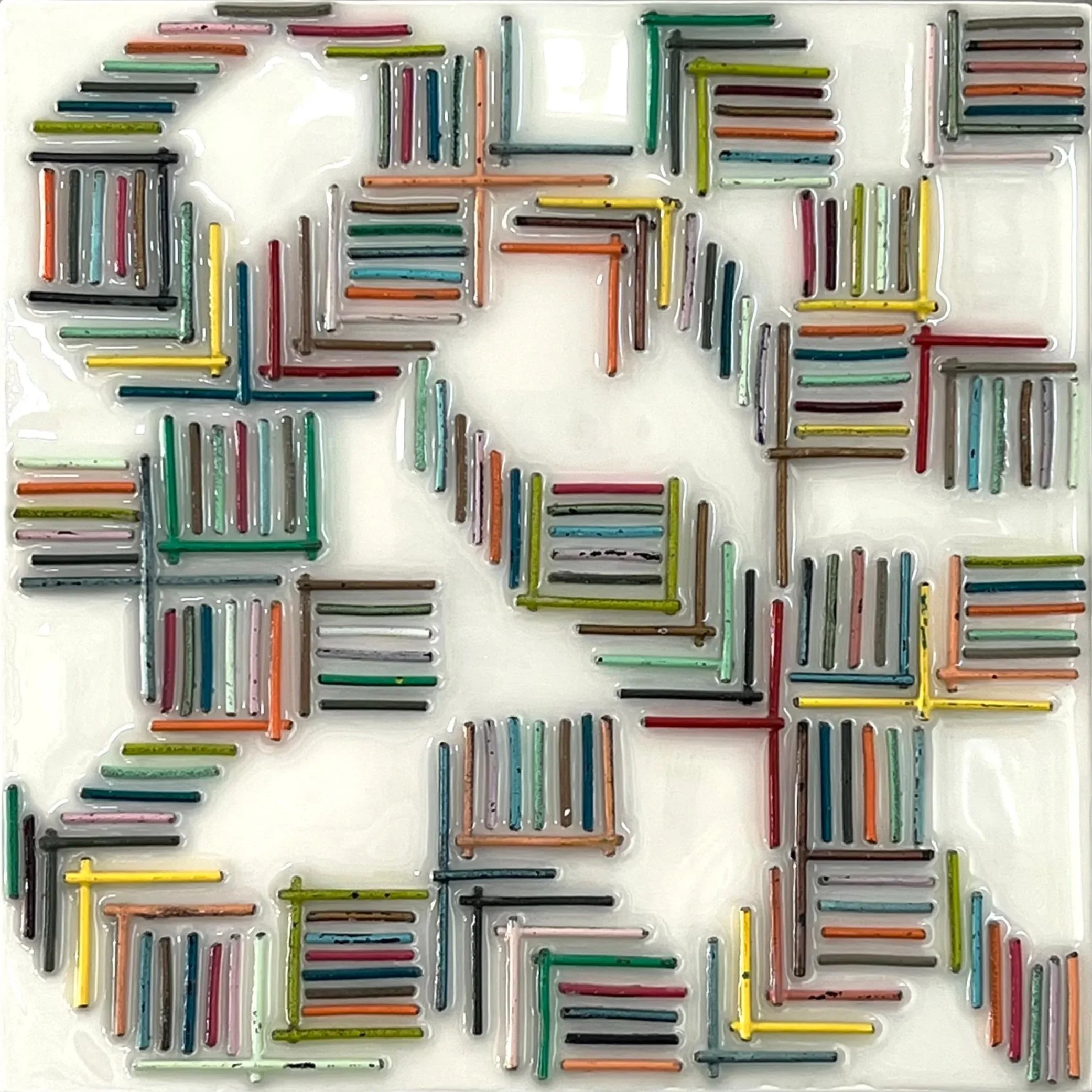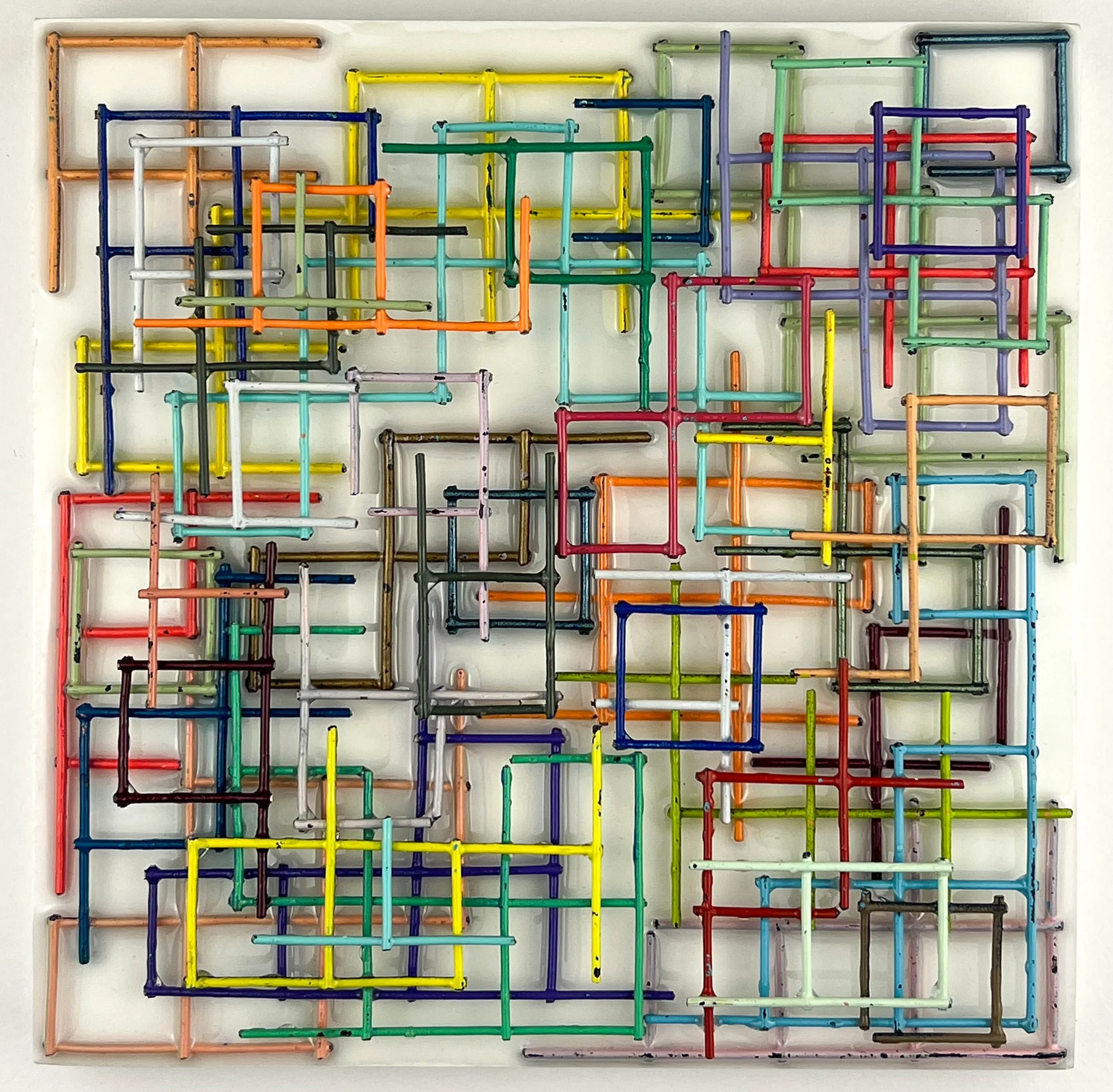 Recycled Metal Fence, Acrylic Paint, Resin